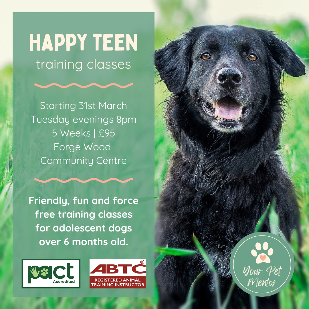 Teen classes are most suitable for adolescent dogs between the age of around 6 months and 18 months old. Feel free to get in touch if your dog is slightly older or younger though, as the classes may still be a good fit.